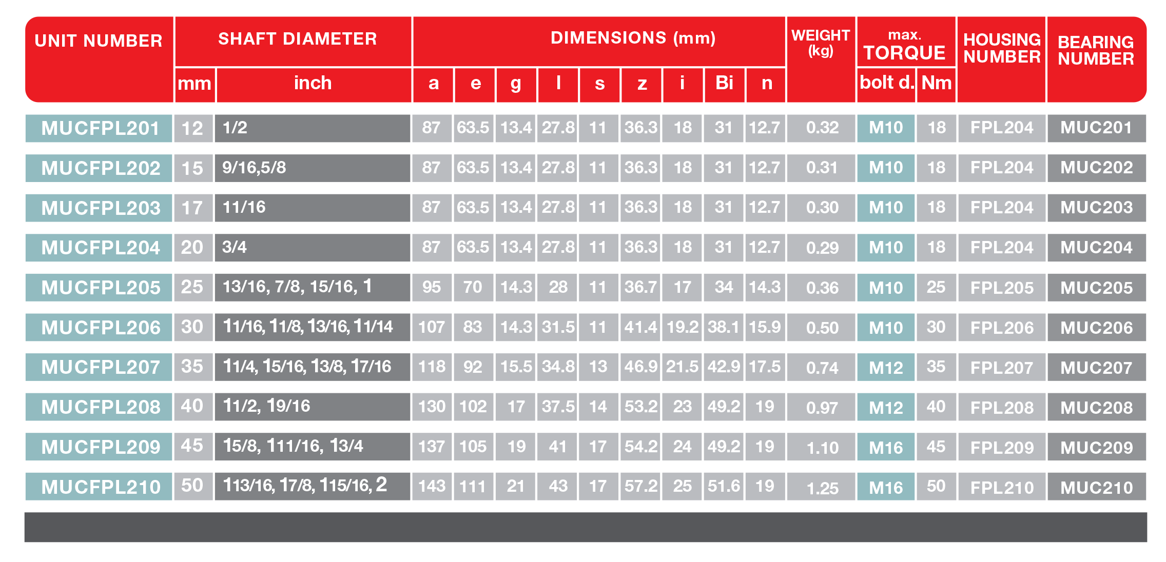 Dimensions from 12 to 50 mm